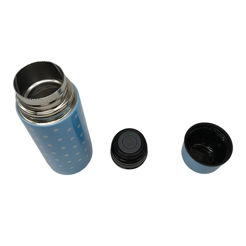 Jianyang Fashion 304 шише за вода од не'рѓосувачки челик има светло сина точкасти стил, што е многу свежо и привлекува внимание, а има и серија од еднобојни за избор. Компанијата е длабоко вклучена во производството на чаши и тенџериња веќе 15 години, со годишен обем на испорака од над 2 милиони парчиња. Производите имаат положено меѓународни сертификати од FDA и LFGB и се извезуваат на пазарите во Европа, Америка и Југоисточна Азија. Нивниот квалитет и услуга ја заслужија довербата на глобалните клиенти.